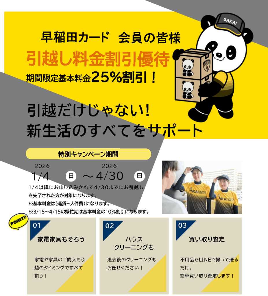 サカイ引越センターより 引越基本料金25%割引のご案内