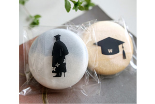 「紺碧」(写真左)または「焦がし」(写真右)のどちらかになります。早稲田大学にちなんだデザインで、どちらも中身は粒あんです。