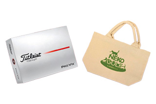 二木ゴルフロゴ入りのオリジナルゴルフボール「Titleist Pro V1x」(1ダース)とオリジナルネコエコバッグのセット。